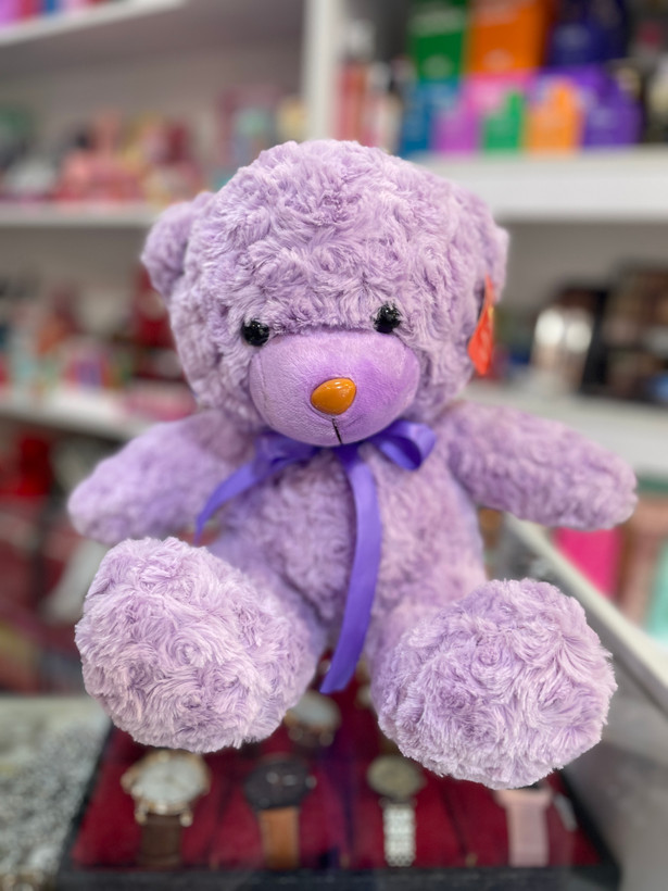 عروسک خرس تدی پشمالو بنفش نشسته ۲۶ سانتی متر