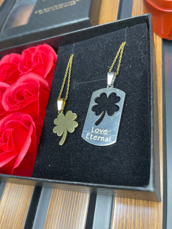 گردنبند ست کاپل دوستی طرح گل برگ