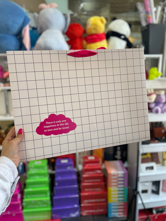 ساک دستی کادو افقی طرح شطرنجی صورتی افقی عرض ۳۷ سانتی متر