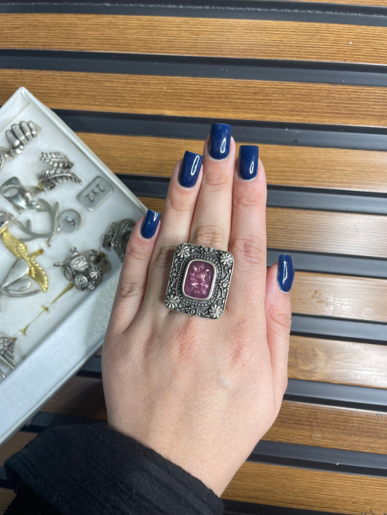 انگشتر دخترانه طرح مربع نگین بنفش😍