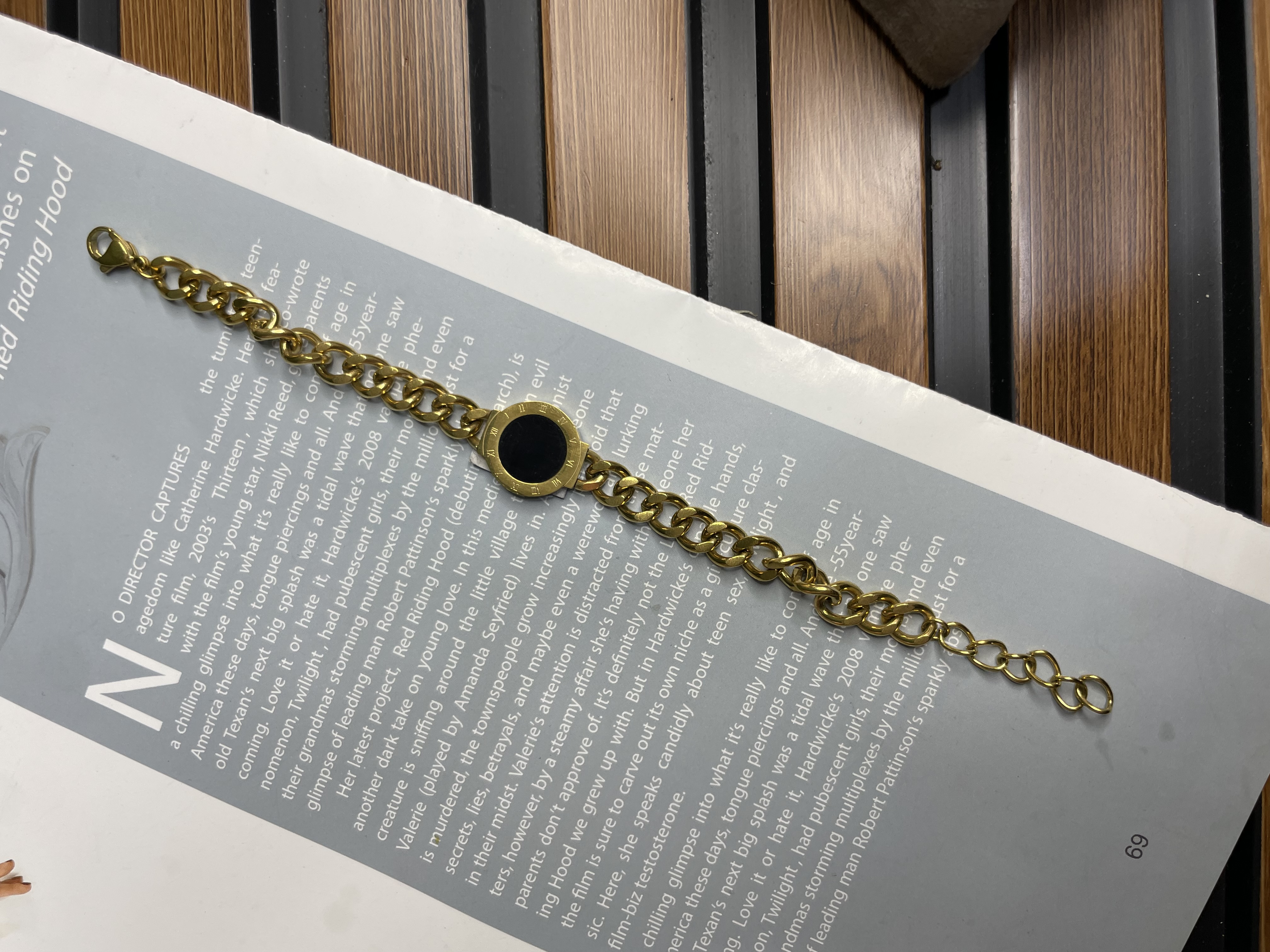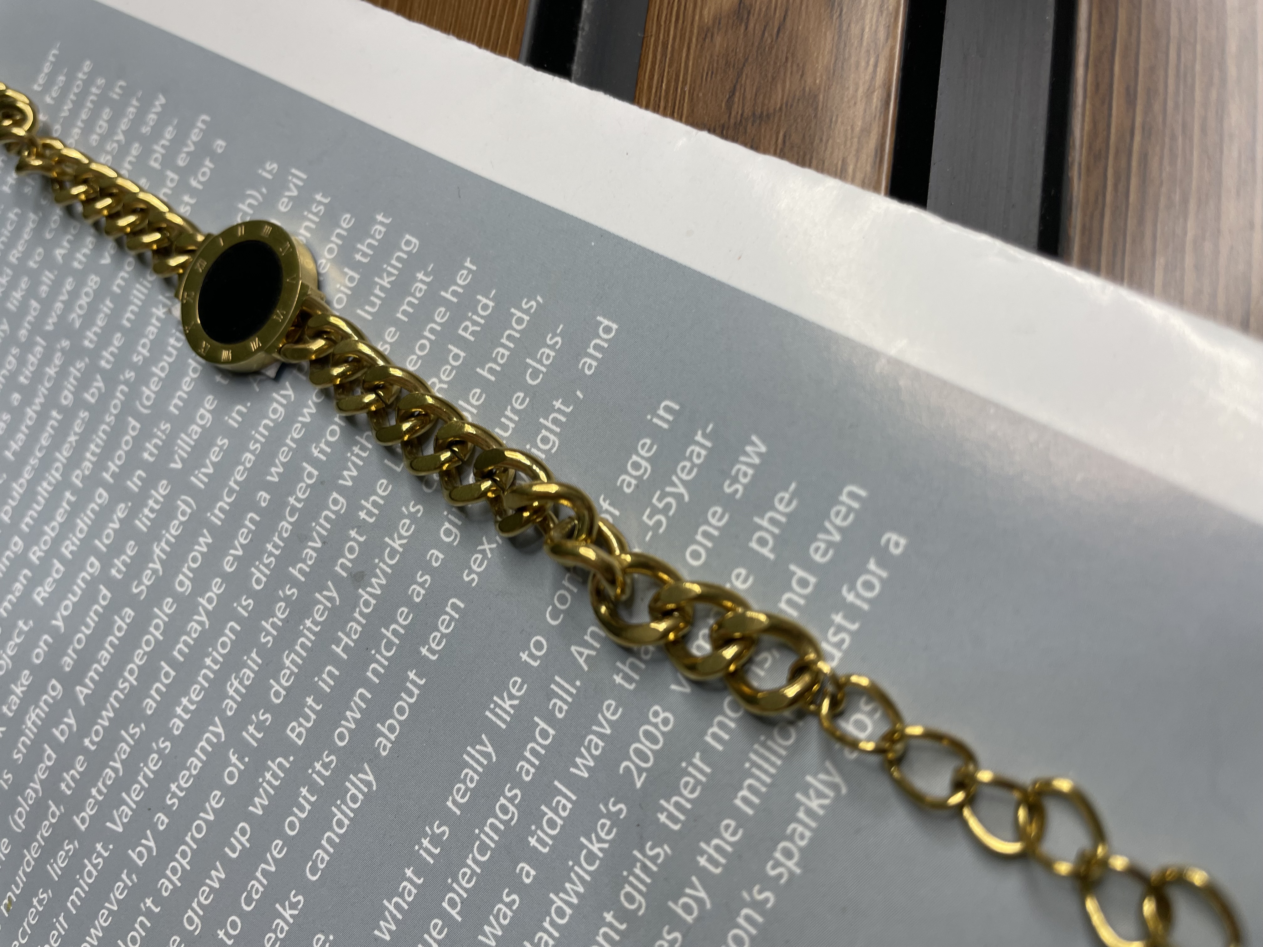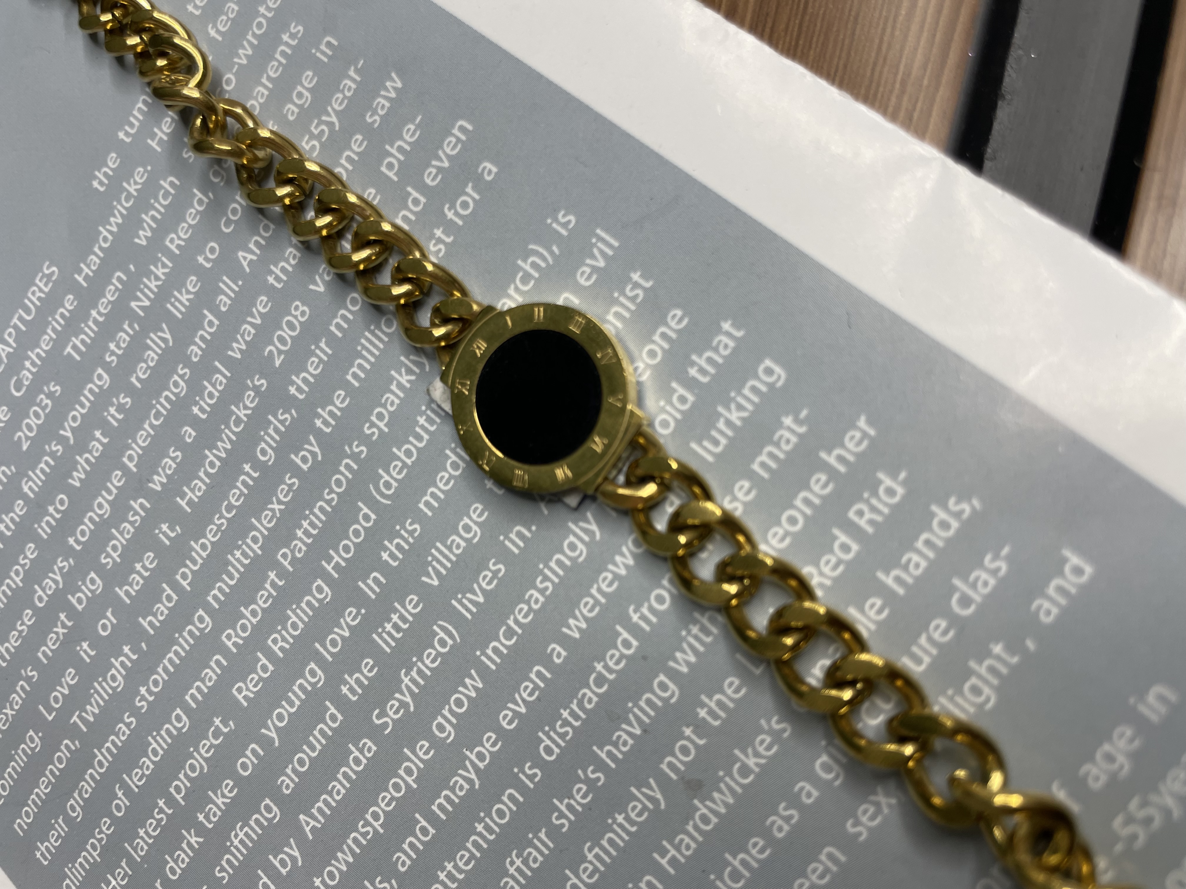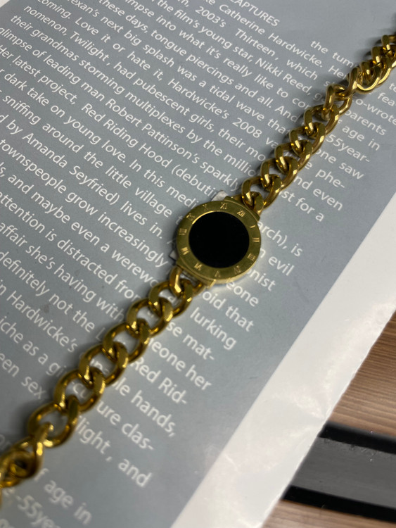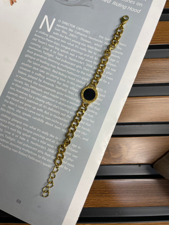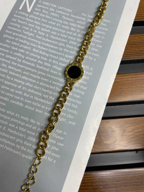 دستبند کارتیر طلایی با پلاک مشکی